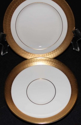 Waterford Fine Bone China, Two Plates, in the Harcourt-Gold Pattern #WFCHAR, Circa 19...Out of stock