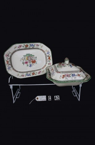 Vintage - Copeland Spode Imperial ware with the Chinese Rose Pattern #2/9253. Made in England, produced in the 1950's, (3) Pieces Consisting of (1 Large Rectangular Platter and (1) Covered Square Vegetable Bowl and (1) Lid. Three pieces being sold as (1) Item.