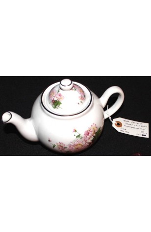 A wonderful Tea Pot and Lid made by the Mayfair Fine Bone China Co. of Staffordshire, England. A Lovely White Tea Pot & Lid, with Pink and Yellow Chrysanthemums, and Greenery. Colors are Pale, yet make a Stand Out Tea Pot that is Trimmed in 22kt Gold. The Tea Pot shows some light crazing, very normal for its Vintage 1930's age. Otherwise in Good Resale Condition unless noted below or in pictures.